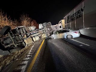 Troopers say the crash began when Juan Garcia Abreu, 41, of Ashley, PA, driving a Fed Ex tractor trailer, went off the right shoulder for unknown reasons.  As he attempted to turn back on the highway, he lost control and overturned the truck and trailer onto its side blocking both northbound lanes.